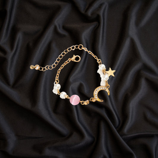 Moon Star Link Bracelet,Adjustable Link Chain | Sparkling Zirconia Bracelet for Women Girls