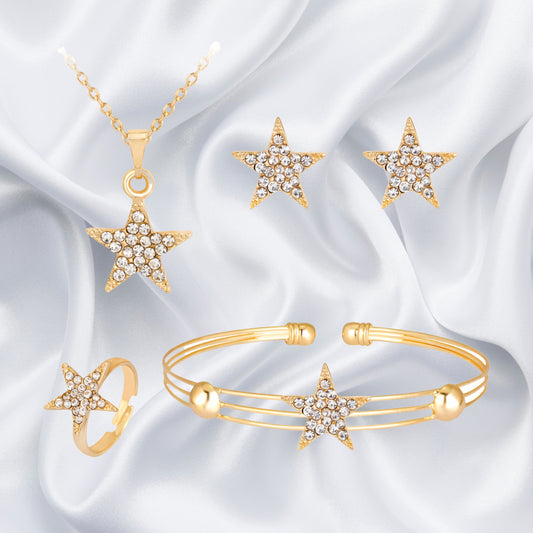 Crystal Star Moon White Gold Color Drop Earrings Jewelry for Women Earring Bracelet Ring Necklace