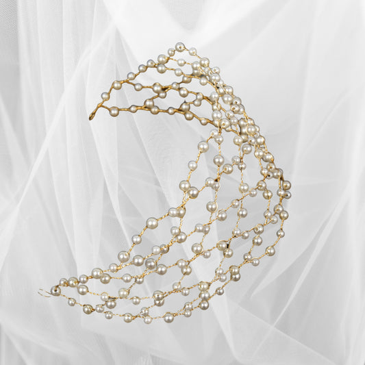 Gold Wedding Headband Pearl Tiara for Women Crystal Bridal Headpieces for Wedding Hair Accessories Bride Hairband