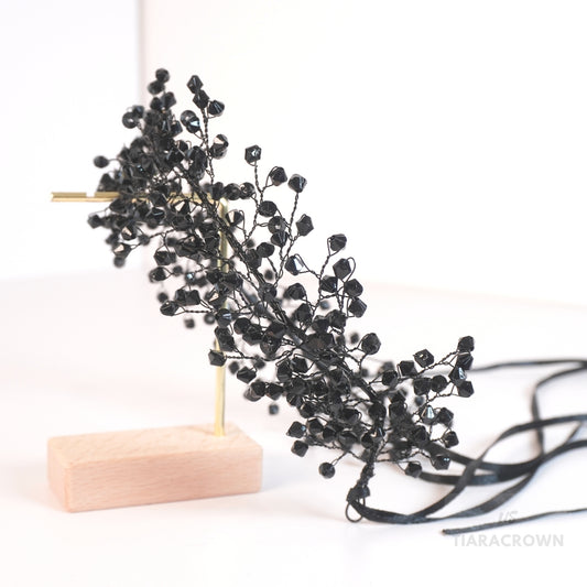 Black Bridal Headpieces for Wedding Headband Bride Hair Pieces Crystal Flower Girl Hair Accessories