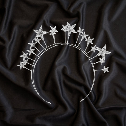 Stars Halo Crown Headband Silver Rhinestones Goddess Tiara Headpiece Party Festival Prom Crystal Hairband Hair Accessories for Woman and Girls