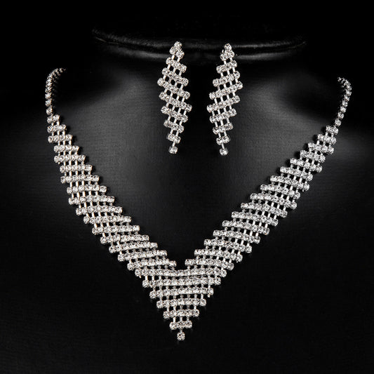 Bride Wedding Necklace Earrings Set Silver Rhinestones Necklaces Bridal Crystal Jewelry Accessories for Women and Girls