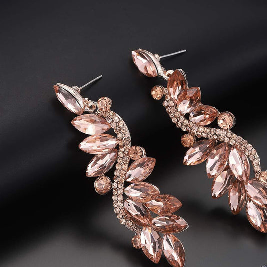 Dangle Bridal Wedding Earrings Crystal Leaf Chandlier Earrings for Women Bridesmaid