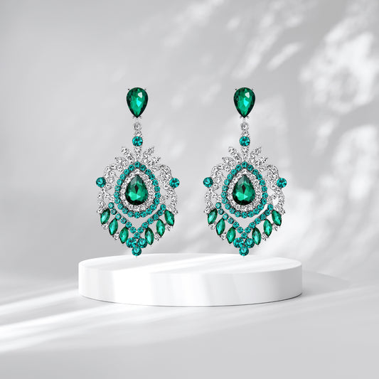 Fashion Rhinestone Statement Drop Dangle Earrings Long Colorful Crystal Bridal Wedding Teardrop Chandelier Earrings for Women Prom Pageant