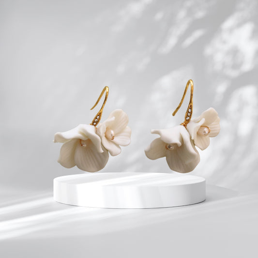 Boho Rose Petal Dangle Earrings - Long Drop Flower Earrings - Statement Exaggerated Floral Tassel Earrings