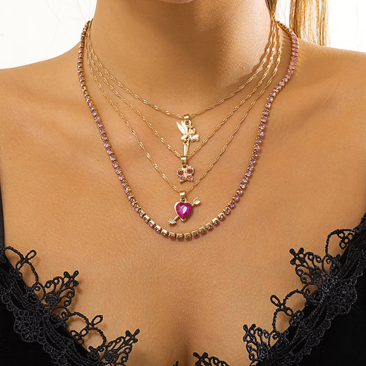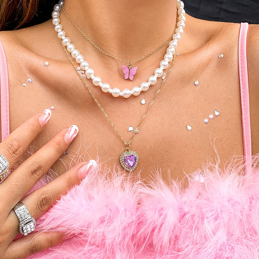 Layered Crystal Butterfly Necklace Rhinestone Butterfly Pendant Necklace Chain Necklace Jewelry for Women and Girls
