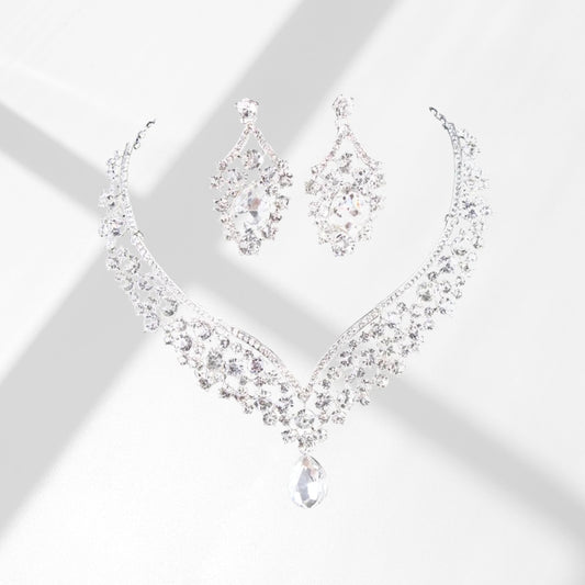 Bride Jewelry Set Silver Crystal Wedding Necklace Earrings Bridal Rhinestone Teardrop Pendant Accessories for Women and Bridesmaids