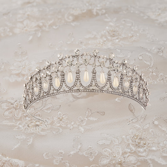 Princess Tiara for Women, Silver Pearl Diana Wedding Crown for Bride, Rhinestone Prom Costume Accessories for Birthday Party